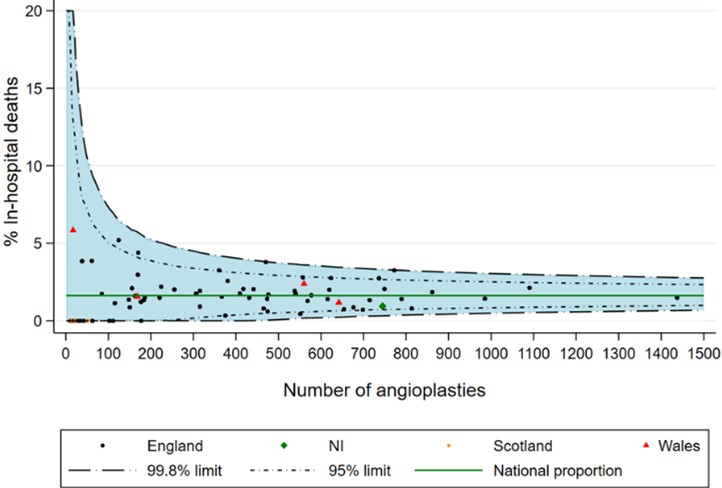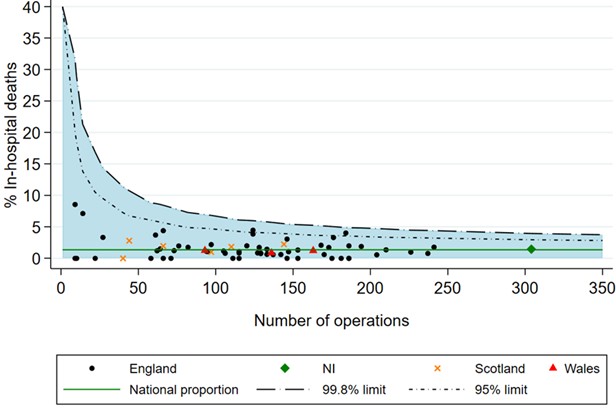 All NHS organisations had an adjusted 30-day in-hospital mortality rate that fell within the expected range of the overall 30-day in hospital mortality rate (national average = 5.9% for 3 years from 2022 to 2024).